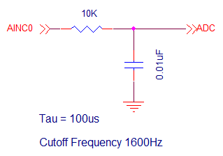 Each ADC input has a low pass filter with cutoff frequency at 1600Hz. DC Input Impedance > 200K Ohms.