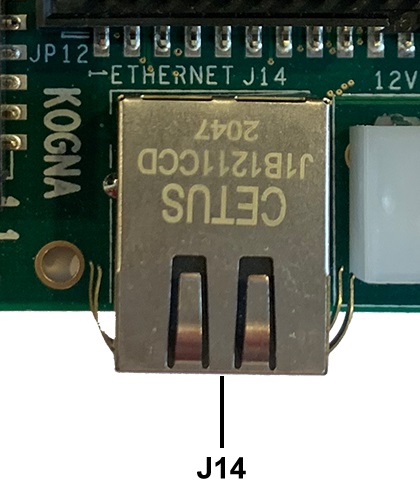 J14 is a standard RJ45 100M Ethernet connector. The metal case is connected to Kogna GND