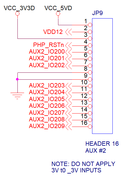 | 7 | AUX2 IO202 | Gen Purpose LVTTL I/O (3.3V Only) |