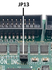 Jumper JP3 should normally always be installed to boot from Kogna's Flash memory. Kogna boots in 2 phases. First a primary boot followed by a secondary boot to the latest installed firmware and possibly User Flashed programs. In the case of a corrupted Version of Firmware or bad Flashed User Program Kogna could crash or freeze after booting. After primary booting Kogna delays while flashing its LEDs for approximately 3 seconds. If JP13 is removed during the delay Kogna will remain in the Primary boot loader to allow recovery by Flashing New Version.
