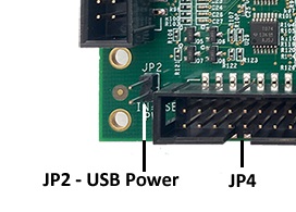 Jumper JP2 connects USB Power coming in Micro USB Connector J3 to supply KFLOP with +5V. USB Power is limited to 500ma and is sufficient to power Kogna with limited IO loads and the +/-15V Generator turned off. If +/-10V Analog DAC outputs are used the +/-15V Generator must be turned on and more power supplied to Kogna. A +5V @ 2A supply should be sufficient. This is also the case with many outputs driving loads with significant current. For example 50 outputs all driving 10ma loads would increase current by ~500ma. Alternately a USB charger that supplies greater current might be used to power via J3 but obviously the USB COM Port would then not be functional.