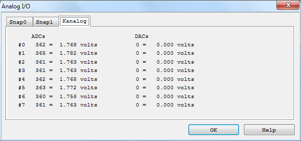 Окно аналоговых сигналов (Analog I/O Status Screen)
