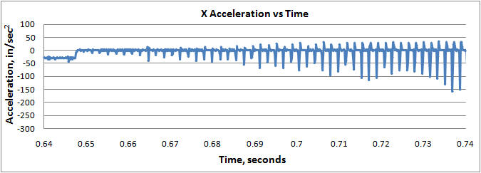 Первый график без фильтрации нижних частот. Обратите внимание на совершенно квадратный угол. Частота дискретизаии графика 180 мкс.