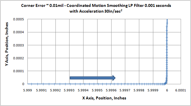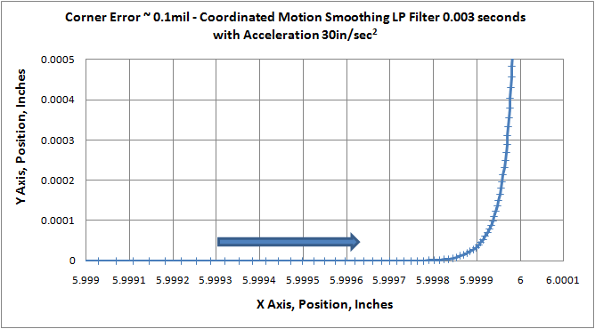 В приведенном ниже примере используется фильтрация с 3 миллисекундами с ошибкой пути ~ 0,1 мил (2,5мкм)