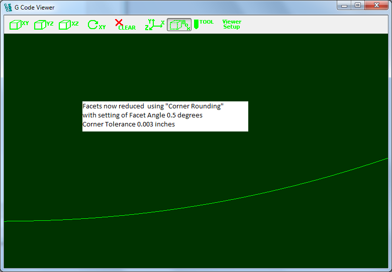Планировщик KMotionCNC содержит два параметра (Facet Angle и Corner Tolerance), которые используются для сглаживания траектории построенной на линейных сегментах G-кода. Ниже показано сглаживание 2D-пути, но оно применяется и к 3D-траектории. Некоторые простые CAD-системы не поддерживают дуги, поэтому заменяют их множеством отрезков. Если угол между гранями (Facet Angle) исходного G-кода меньше заданного значения, траектория будет разбита на "маленькие" участки и пройдена без остановки. Новые отрезки траектории будут располагаться вдоль дуги, максимальное отклонение не будет больше углового допуска (Corner Tolerance) или более 1/2 от длины сегмента. Если использование функции обхода углов не требуется, Corner Tolerance должен быть установлен в ноль.