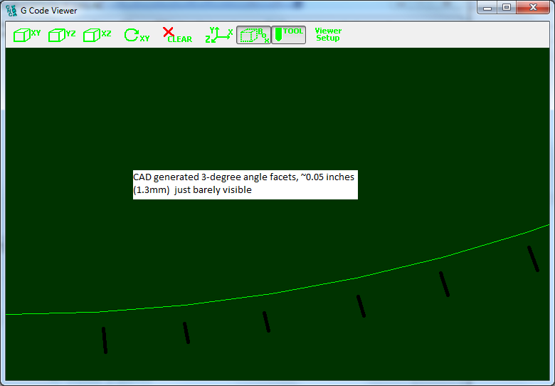 Обратите внимание, что обведенная область пути выглядит сглаженной, но при приближении, как показано ниже, углы градиента по 3 градуса едва заметны. Это разрешение обычно используется для обеспечения достаточно плавного пути без увеличения размера файла.