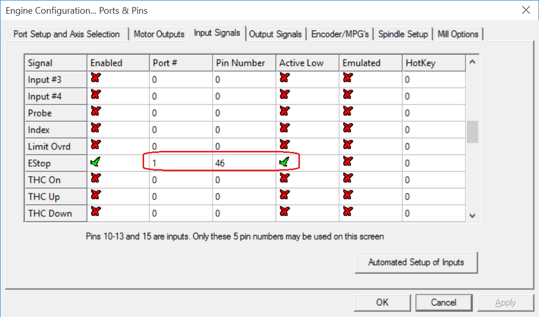 6. Within Mach3 - configure IO Bits.