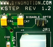 KStep normally drives JP36 pins 11 - 14 with selected Opto Input Data. If Opto Input Data is not desired this jumper disables this feature and leaves these pins in a high impedance state. This might be necessary if the connection to KFLOP desires to use the associated pins for some other purpose such as KFLOP Encoder inputs #2 and #3.