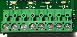 Each of the 16 Optically Isolated Outputs is completely isolated with a + and - terminal. When active the output passes current from the + to - terminals much like a relay contact would.