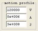 Профиль движения зависит от максимальной допустимой скорости (в единицах положения в секунду), максимального допустимого ускорения (в единицах позиции в секунду2) и максимально допустимого рывка (в единицах положения в секунду3). Эти параметры так же будут использоваться для любого независимого (движения не по координатам) перемещения оси. Параметры ускорения и рывка учитываются при движении по команде от кнопок оператора KMotionCNC (jog) или кнопок внешнего пульта.