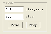 Для выполнения измерения, выберите продолжительность времени сбора данных и размер шага, нажмите Move для перемещения с учетом профиля движения или кнопку Step для просмотра реакции системы на ступень.
