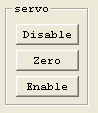 Кнопки управления осью позволяют отключить (Disable), обнулить (Zero) или включить ось (Enable). Если ость стала нестабильной, например, из-за слишком большого P, можно отключить ось, затем ослабить усиление и снова включить ось.