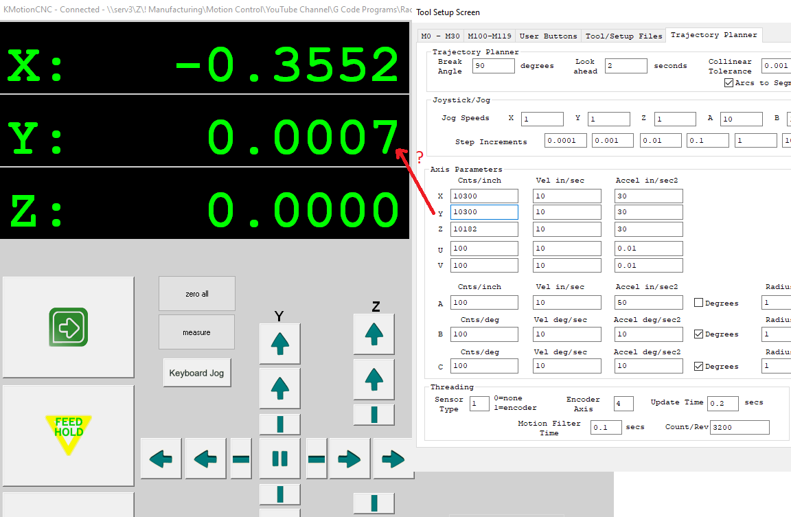 In the Tool Setup Screen, in the Axis Parameters section, I'm noticing that when change the value for both X and Y by the same amount, the X & Y in the DRO are not showing the same newly updated distance.