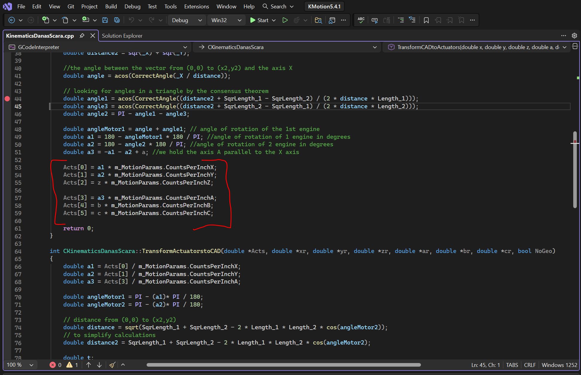 Visual Studio has various build configurations. Basically Debug and Release. Debug is less optimized and easier to Debug. Release is more optimized but difficult to debug. Debug code is placed in the \KMotion\Debug folder. Release code is placed in the \KMotion\Release folder.
