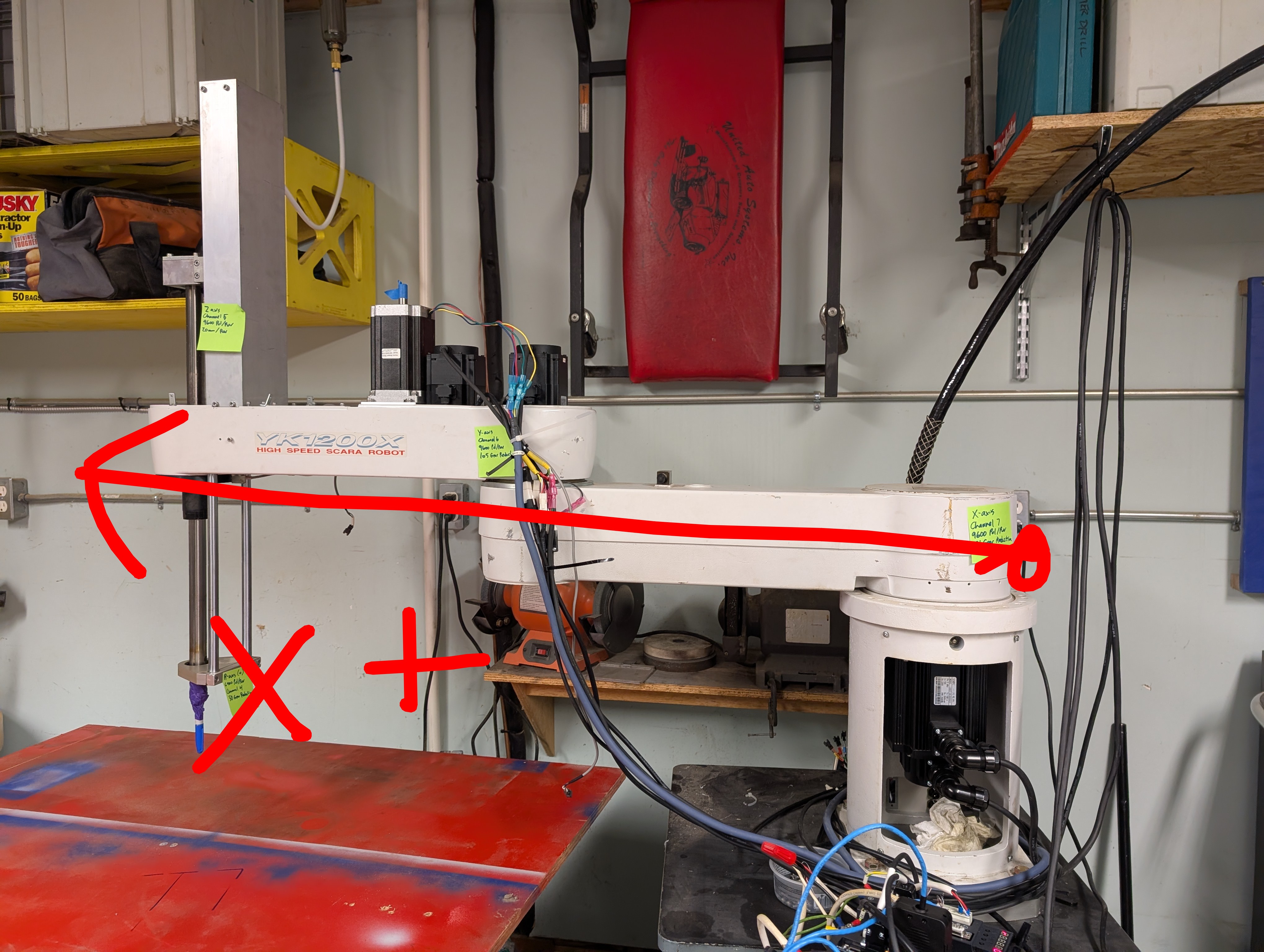 One thing I realized is my shoulder joint is turning the reverse from what I think should be the positive direction, for coordinates as drawn. So for example, a moveRel7=5000 from the console moves in what would be the clockwise direction, looking down on the robot, or towards the x axis. I think I just need to flip the direction in the channel setup? I'm guessing it is straight forward, but I'm missing it. I did try setting the count/deg in the trajectory planner to negative but I don't think that was right. And, oddly, now that I changed x and y ( I mistakenly changed y) I can't seem to set them back? I tried removing the minus, but they seem to persist after choosing "OK" and also after a restart.
