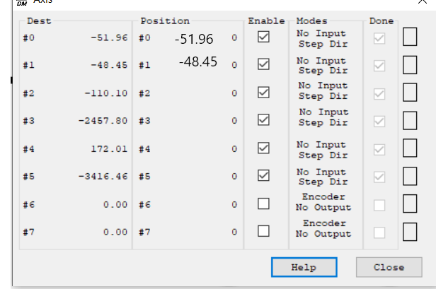 I already have my kinematics loaded, and it gives me correct values, only that when I run it in KMotionCNC the values change a little when changing them, is this normal? It is only open loop control, I do not have encoders,Could it be a question of the adjustment parameters of my channels? I attach a video link of what it does to me, although it does not change much, for example 970.0 changes 969.99 or 968.70 to give an example.TomKerekes wrote: ↑Sun Oct 22, 2023 9:21 pmThe TCP Parameters (all internal variables) are always in inches. So to convert to mm multiply by 25.4
