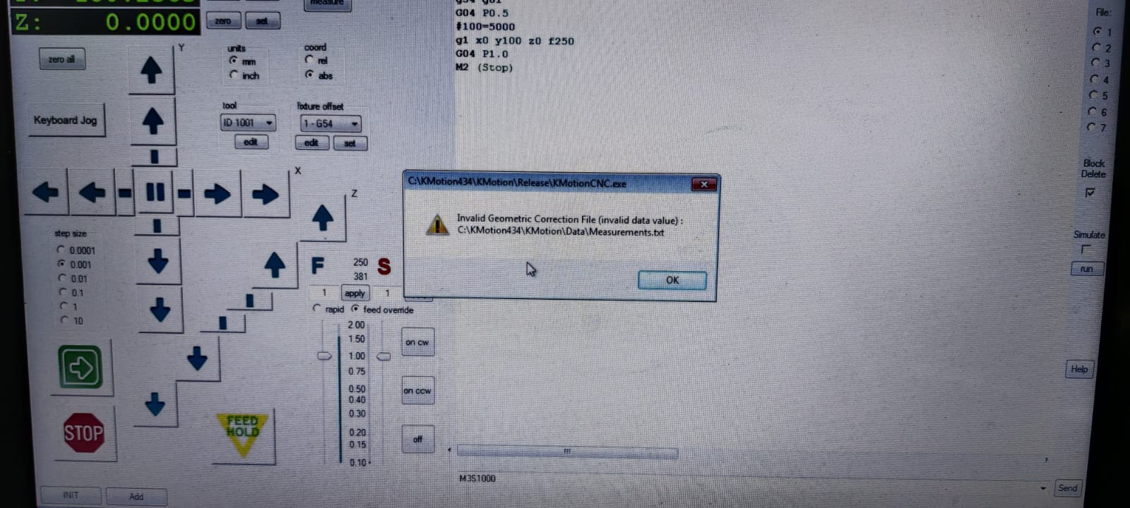 after ignoring the message, i jogged my y axis to 100 and pressed measure button