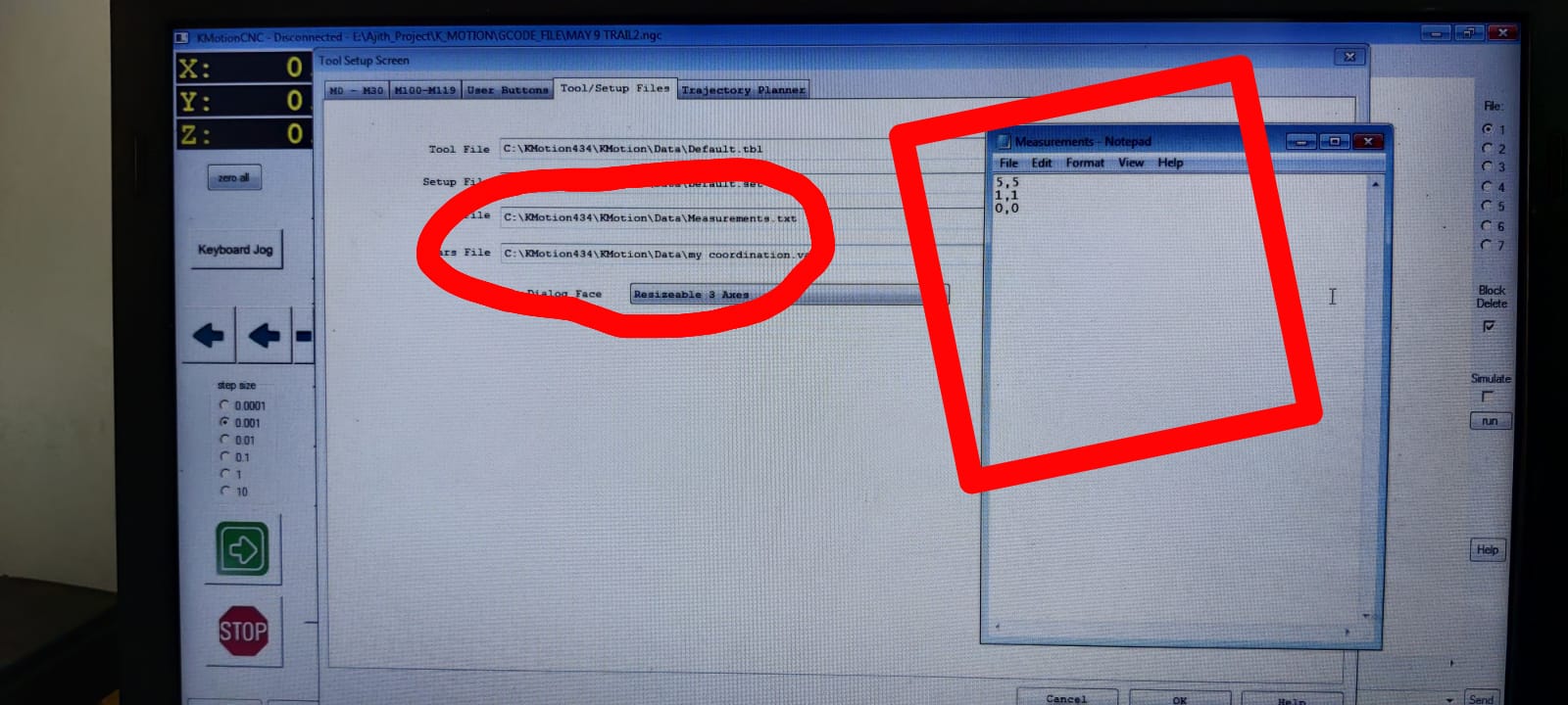 After pressing the measure button, the values written in the geotable file and the jogged value is not same.