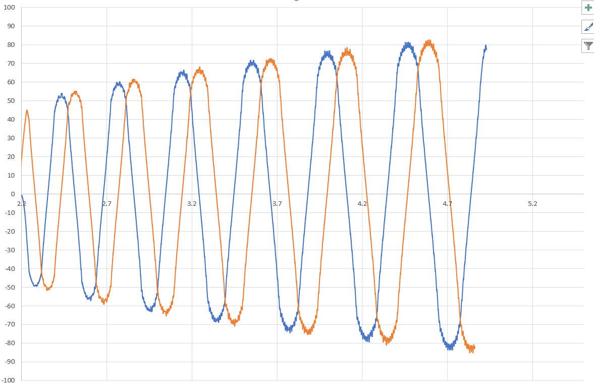As you can remember the first round at small radius exhibits some noise, but reasonable continuous velocity.