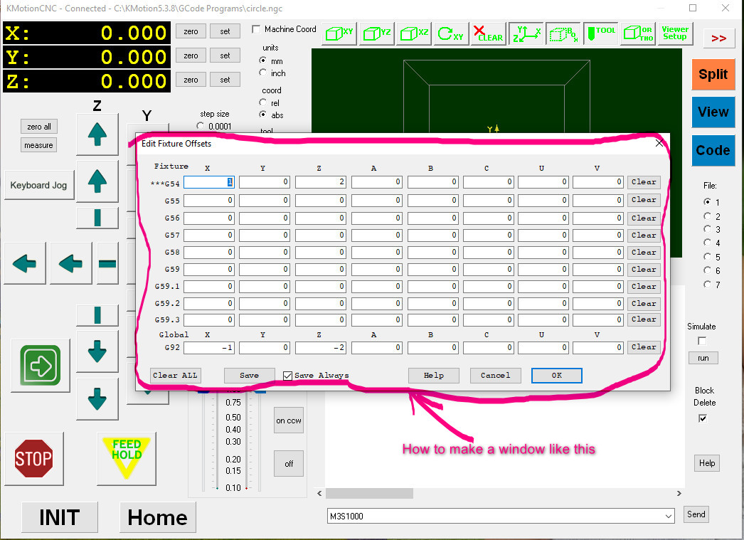 I want to press a button to open a window and enter data as done, for example, in “Edit Fixture Offsets”.