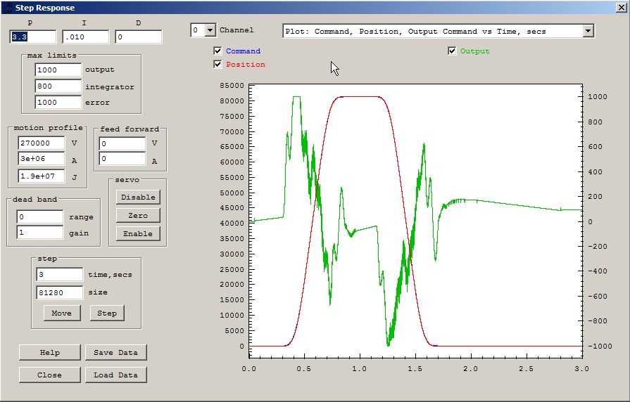 This is a test move of 1.0" (20320 counts). I didnt move further as i was worried about runaway. Because the movement is unstable.