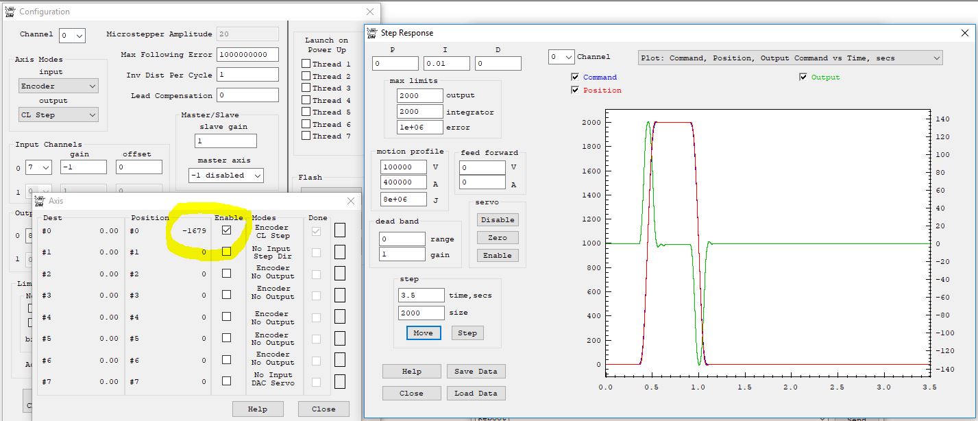 I set "Max Following Error" to a high value, so I dont get a fault. I am in "CL Step" mode with an encoder. I am thinking that setting the "Max limits" on the step response screen to high values should do the trick