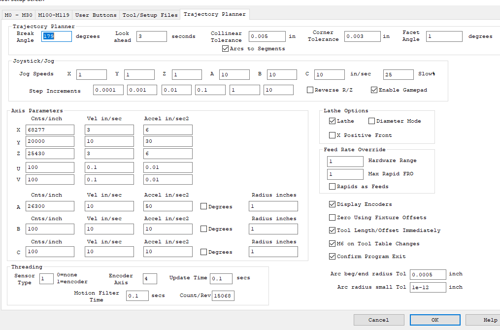 Setting up a lathe with Fanuc DC drives. I can use DAC commands on X ,Z, and spindle. They respond smoothly and correctly for direction and speed. I can use the move commands in tuning for the Z axis and get the expected results. The step command will only jerk a minor amount and back regardless of how I change the settings. The X axis just takes off in one direction or the other and runs until it hits the limit. Can the direction be wrong even if the Dac commands work correctly? What else should I check and what would you want too see to help with this?