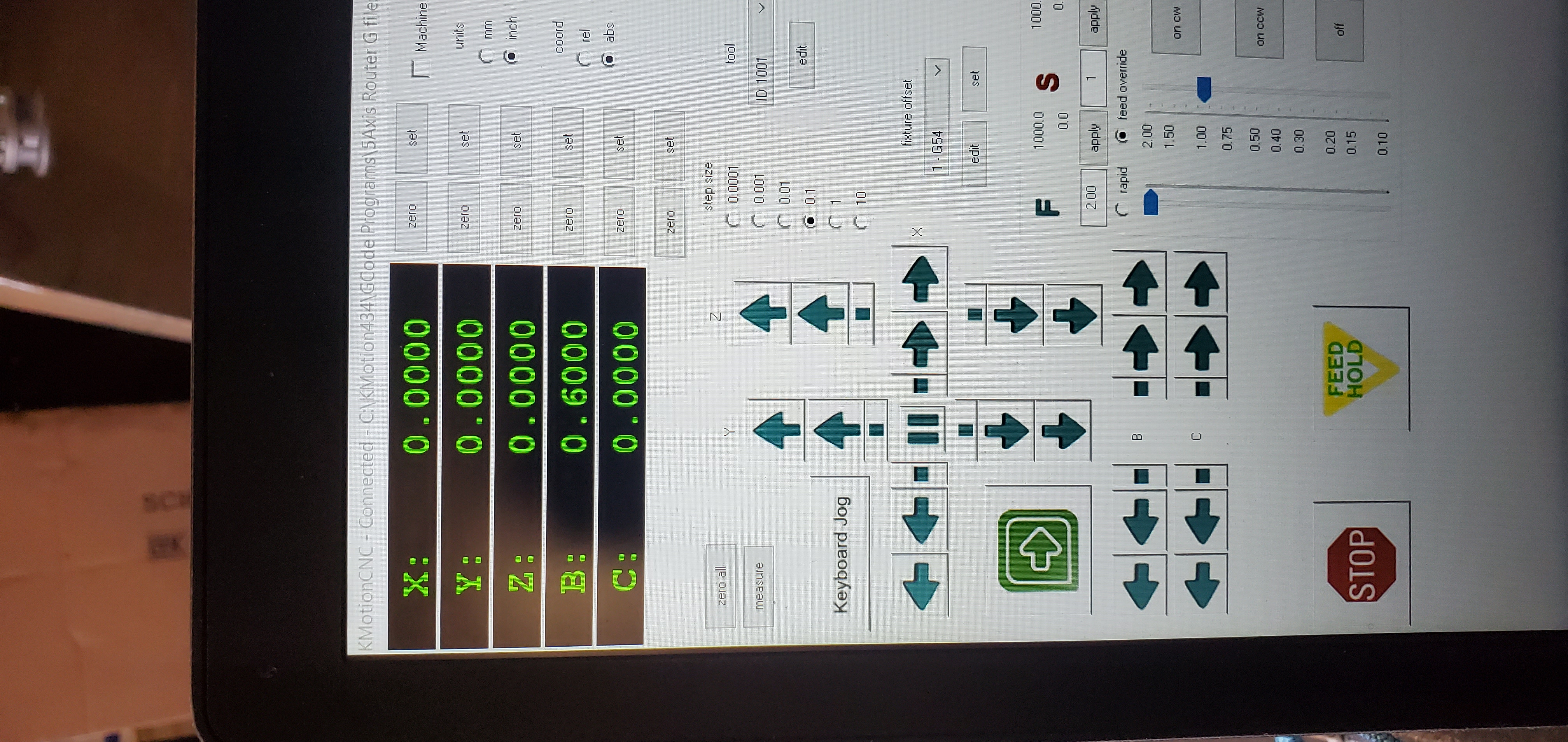 XYZ DRO would read 0.0000,while all the axis where moving. B and C would show the angles. Sometimes as well, the DRO's would all read 0.000 at the start of the motion and once they returned to 0.0000, the XYZ DRO values would not read 0.0000. There would be some random vales sow up. I have had all zero's sow at times but when I hit the INIT some random number would pop up on The DRO. Check attached pic.