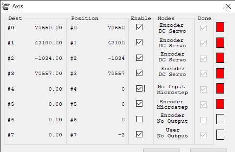 One issue I see is that on the Axis Screen Axes 4 and 5 are enabled and configured to Drive SnapAmp in Microstep Mode even though I don't see where they were ever configured. SnapAmps Output channels are all already used by axes 0-3. Do you have other programs? Did you Flash anything to KFLOP?