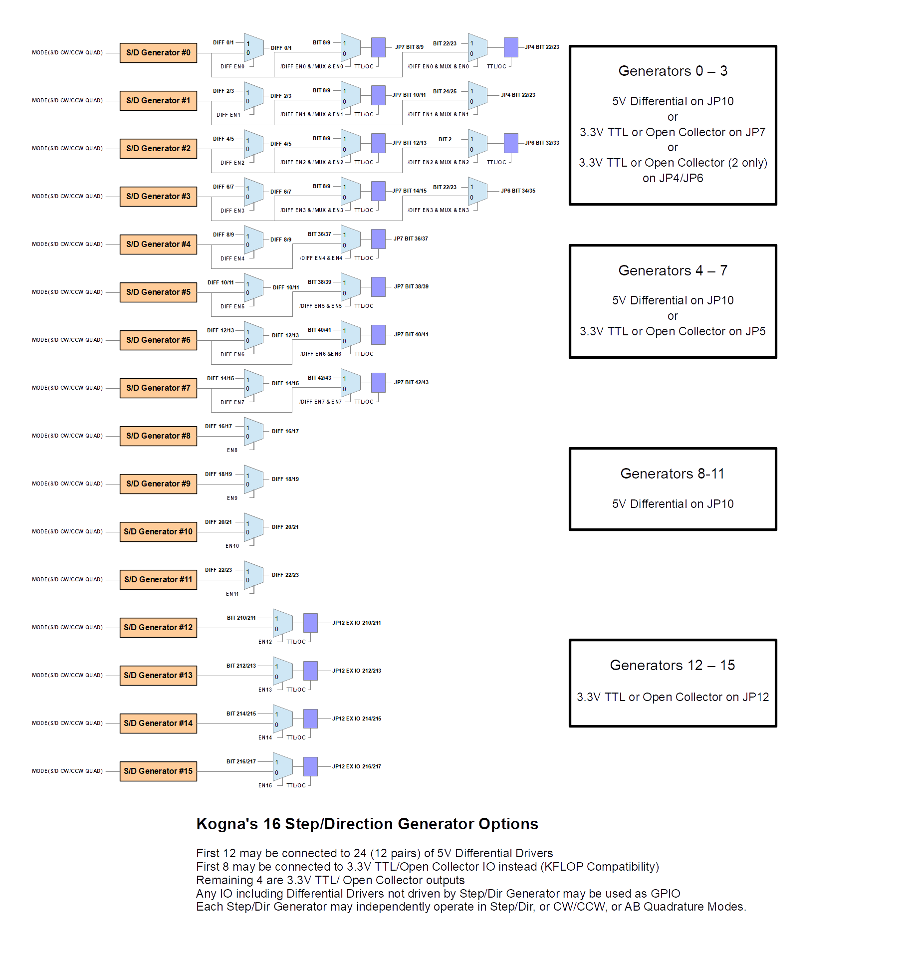 The first 12 of Kogna's Step/Dir Outputs can be directed to Differential Outputs on JP10 and JP14