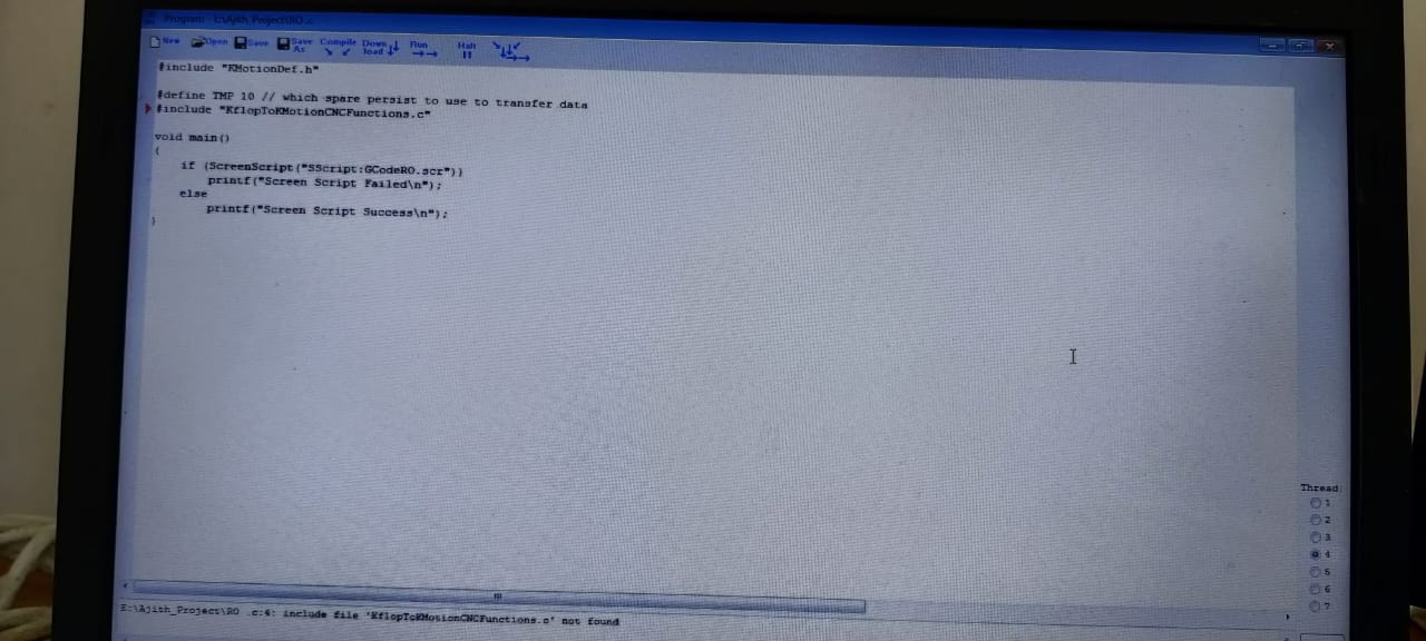 I tried to change the gcode screen in the kmotion cnc via c program in the below i had executed the program by defining it as a button. when I executed the program i got the below popwindow.