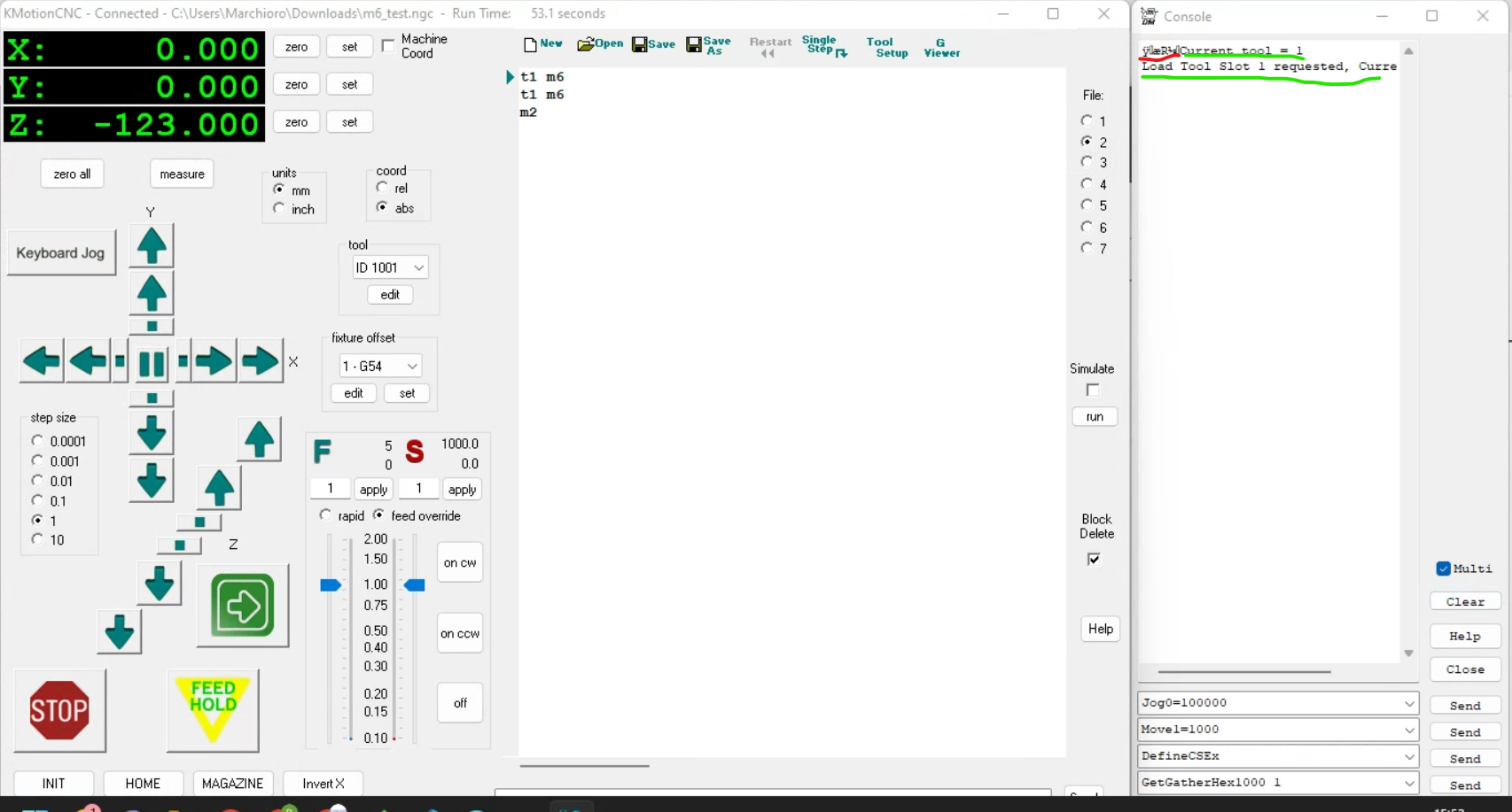 Additionally, I would greatly appreciate it if other Kogna users could try the above test to see if the file loading error is reproducible on your systems. If you are not comfortable using the "M100 test.nc" file I uploaded, it simply contains 500 lines of M100 followed by M9 and M30.