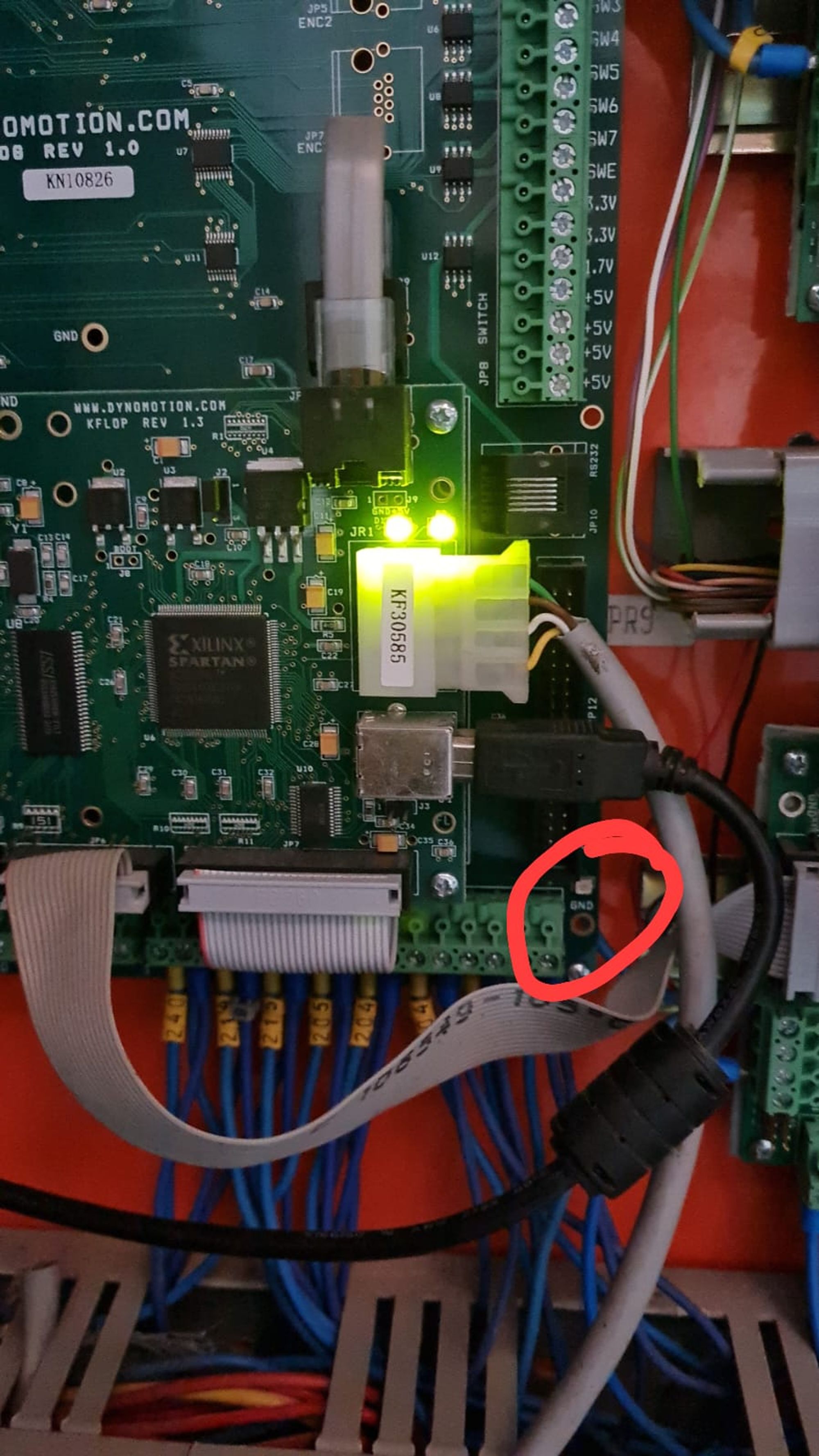I checked the KFLOP/KANALOG boards and realize that when this situation happens the led pointed below becomes off.