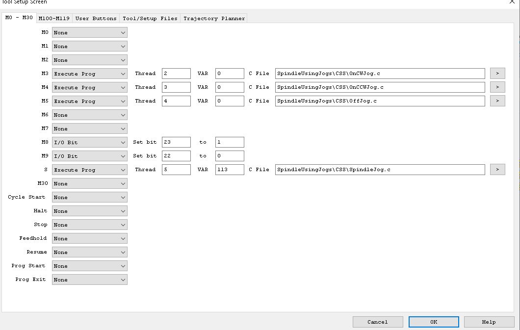 Normally yes. But some of your code seems to indicate you are also using the Spindle as an A Axis. Are you?so only CCW jog, spindle jog, off jog, settings and spindle def controls the actual spindle right????