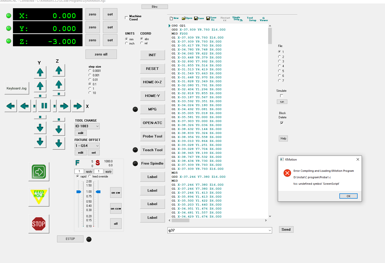 The function ScreenScript should be defined in KflopToKMotionCNCFunctions.h. Is it?