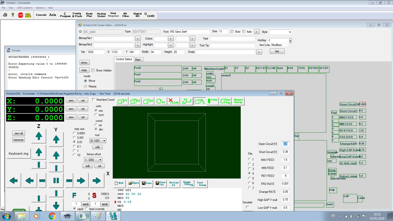 I want to write a C code to automatize GAP control in KmotionCNC in accordance to GAP voltage.