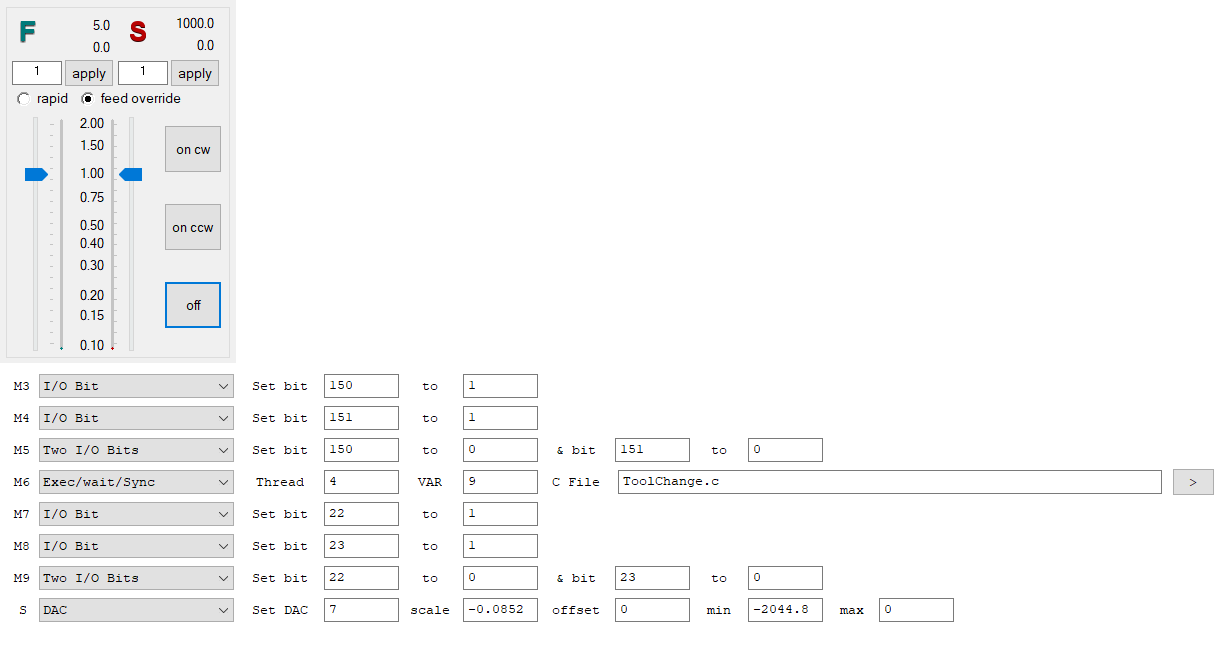 " The standard SpindleUsingJogs examples can now be used for an open loop DAC controlled Spindle.