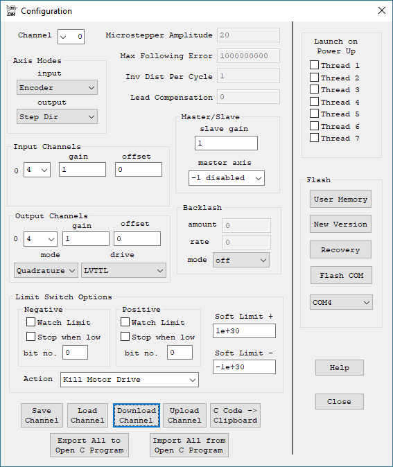 I finished setting up the machine axis in the Step response window and flashed the C file to Kflop. Everything turned out great.