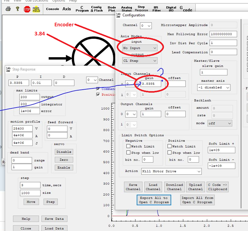 We need to see your Step Response, Configuration, and IIR Screens in KMotion.exe. Not KMotionCNC.