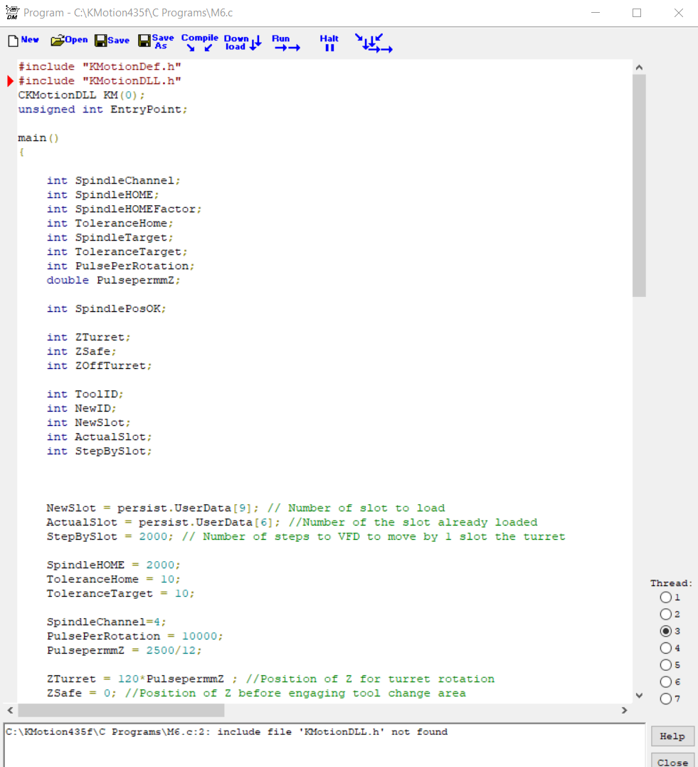 I have been trying to call a program in a program, from some examples I see I need to include "KMotionDLL.h" the but I always get a message error :