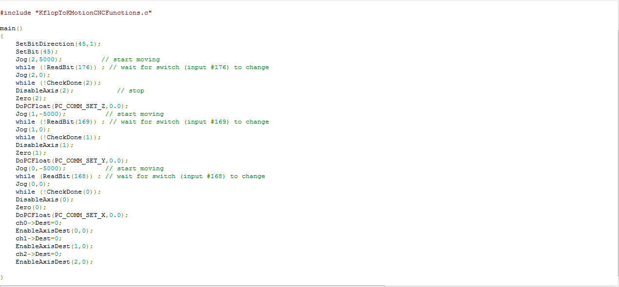 I used a C program for homing our three axis and in that program i have turned on bit 45.Then I have assigned that program as a button in my KMOTION CNC screen. now when i execute the program by pressing that button all our axis returned to its homing position and bit 45 also turned ON but when the program execution got completed the bit 45 turns OFF automatically but i never used a command to reset that bit in my program.