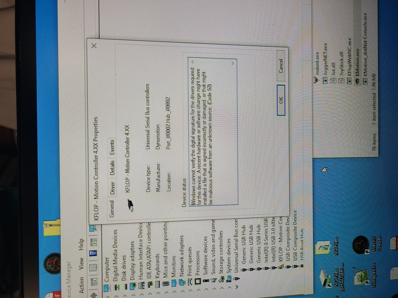 One other item of note, windows is running in test mode for unsigned drivers. when I take windows out of test mode the kmotion board isn't detected. Any chance this is related?