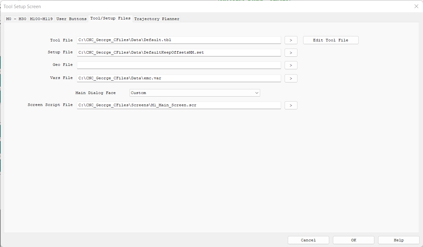 The KMotionCNC Configuration seems to be for a KStep system rather than SnapAmp. Or I don't see the configured C Programs included. Here is what the Tool Setup Shows.