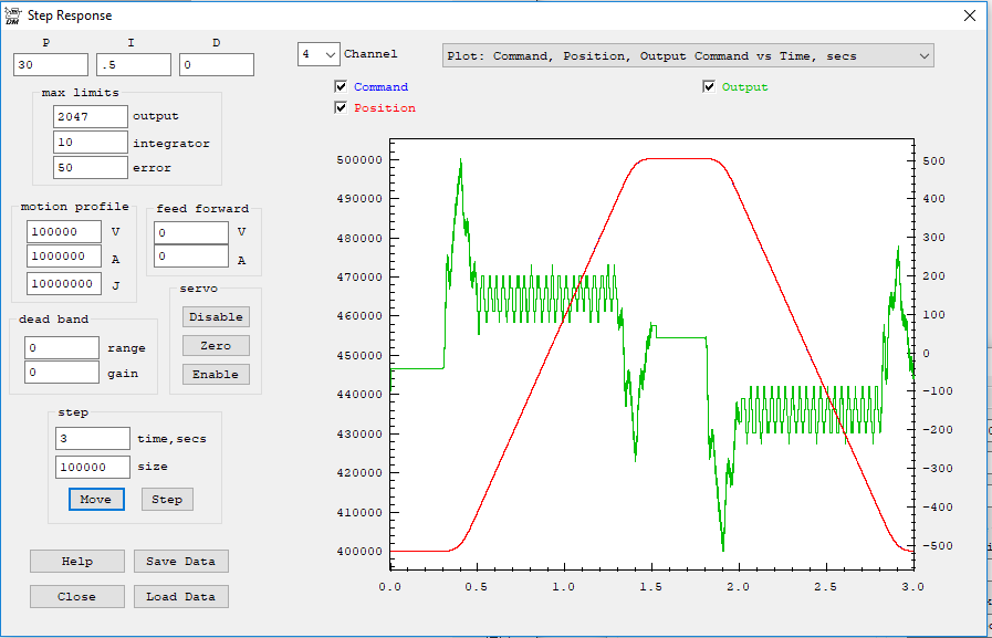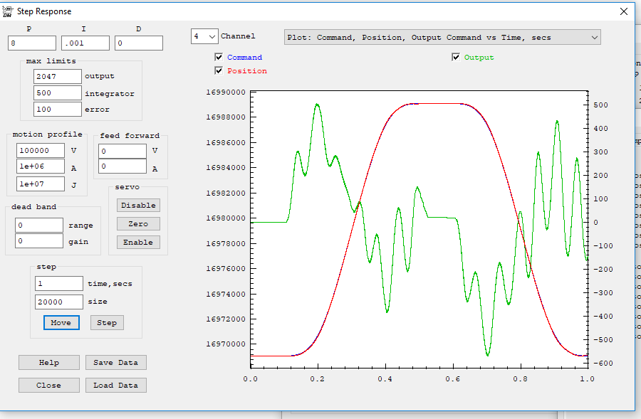 I have also attached a screenshot of the step response screen from the 4th axis. The output looks very different than the other ones...don't know if this is due to it being rotary?