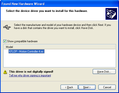 Select "KFLOP - Motion Controller 4.xx" and slelect Next