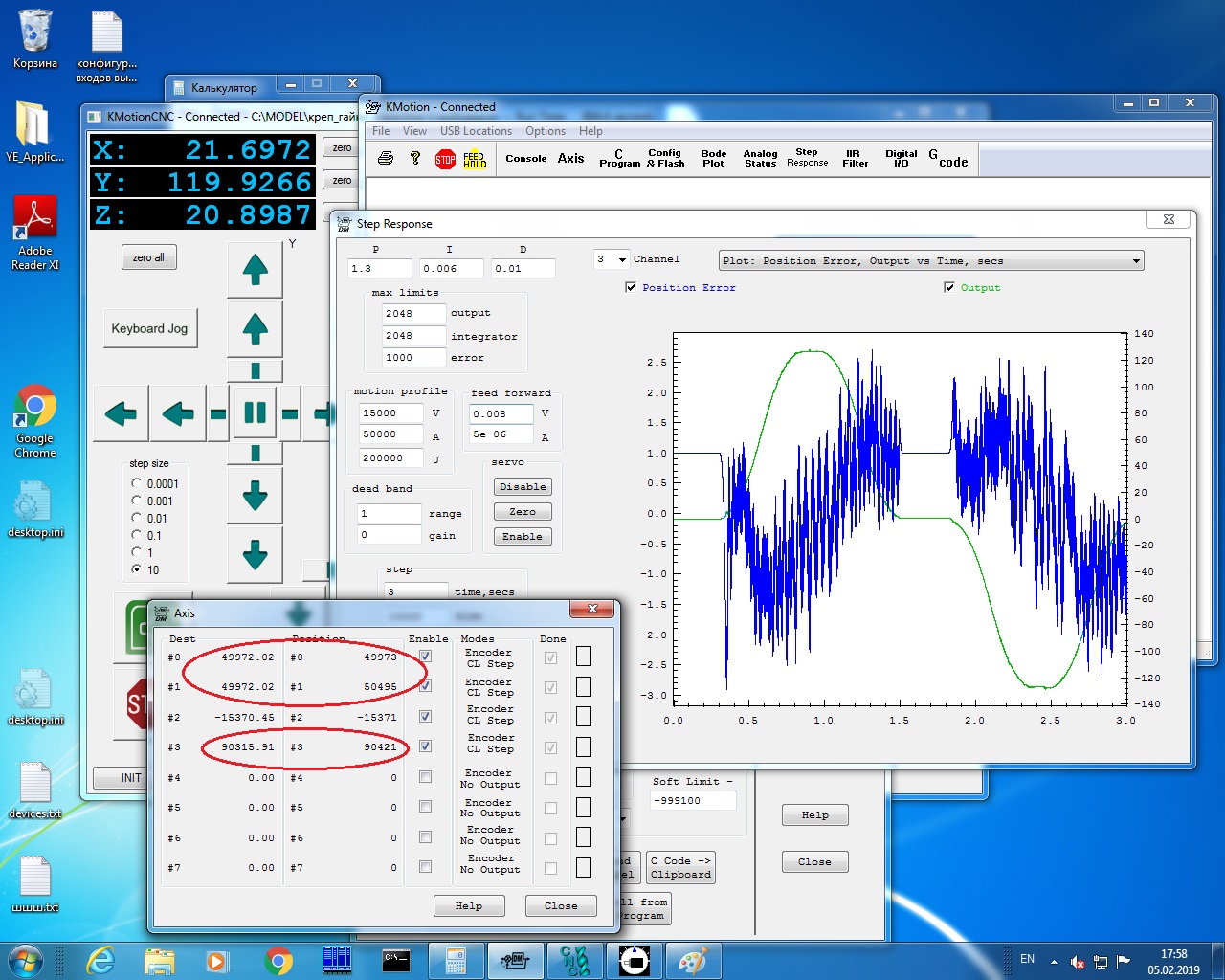 I'm not sure I understand the question. But KFLOP will only correct for loss Steps by the amount you allow. Max Limit Output and Max Limit Integrator will limit the correction. Previously you had limits of 2048 steps. So for example if 3048 steps were missed then there would still be an error of 1000 steps.For today the question remains - how is it possible that does not return the axis, seeing at the same time that the encoder axis has moved forward ...