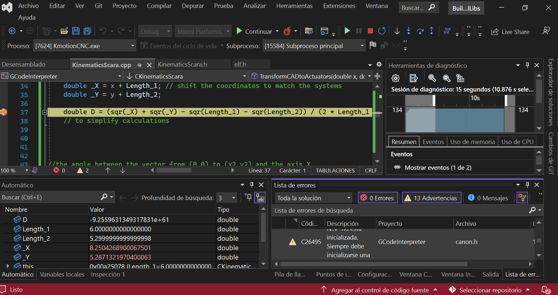 5)Set a breakpoint on first executable line in TransformCADtoActuators() (many ways to do this - a click in the margin is easiest)