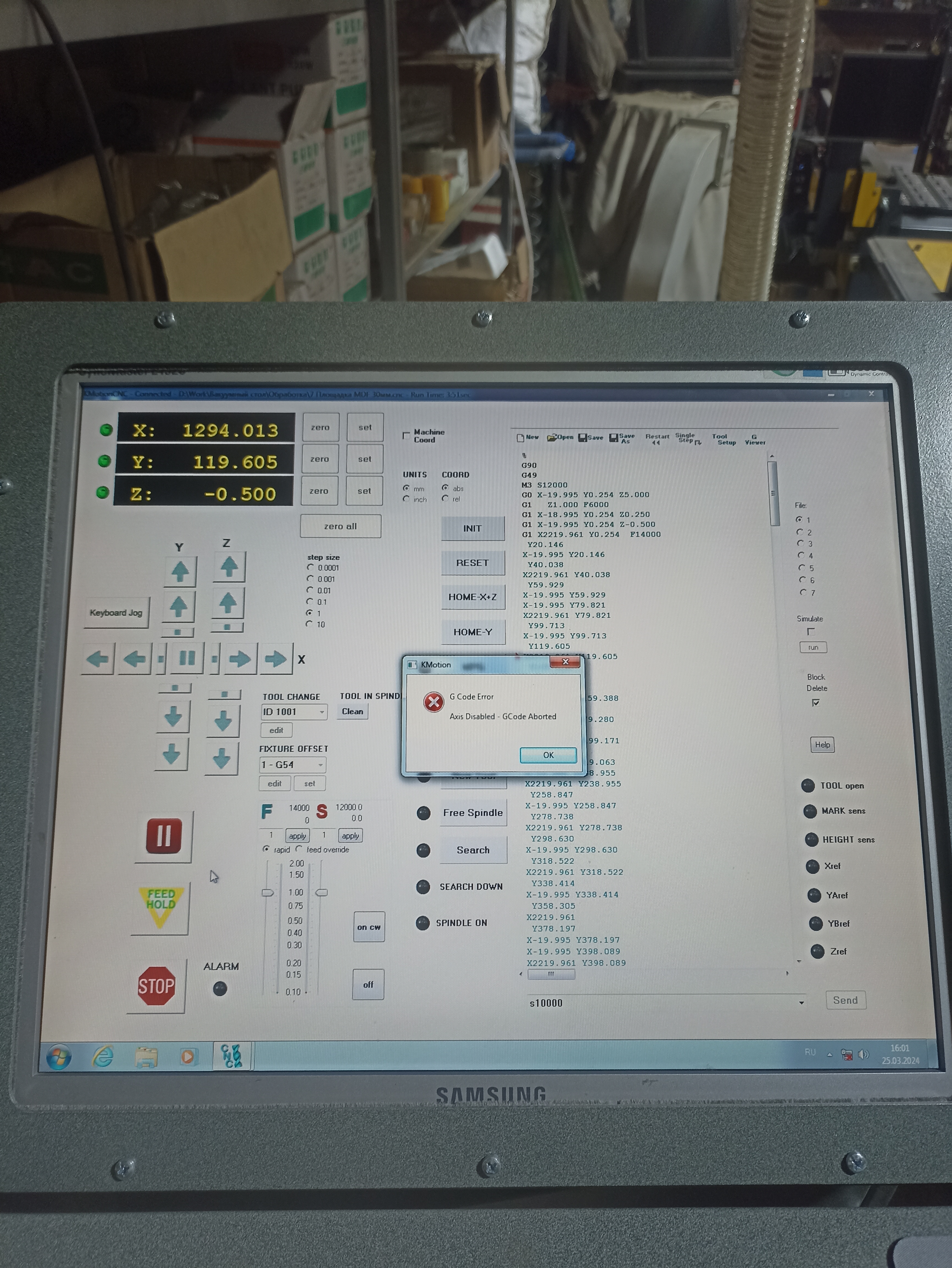 Instead it says "Axis Disabled". Are the Axes disabled? Check with the KMotion Axis Screen. Do you have anything that would disable the axes?