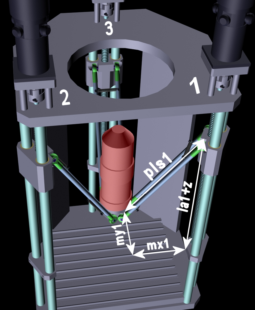 I'm curious. It seems the equations assume the mechanics are perfect. Motors mounted in perfect positions, guide rails perfectly parallel to z, link rods perfect length, etc. Do you have any idea what type of accuracy is achieved? Have you considered any further calibrations?