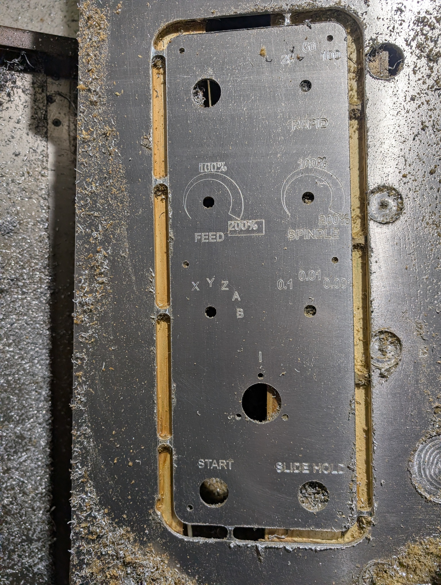 I did the engraving with a 1/32" end mill, otherwise I'm happy with it and will be well on my way to having a finished operator console after I get back from this service call (and deal with two other jobs).